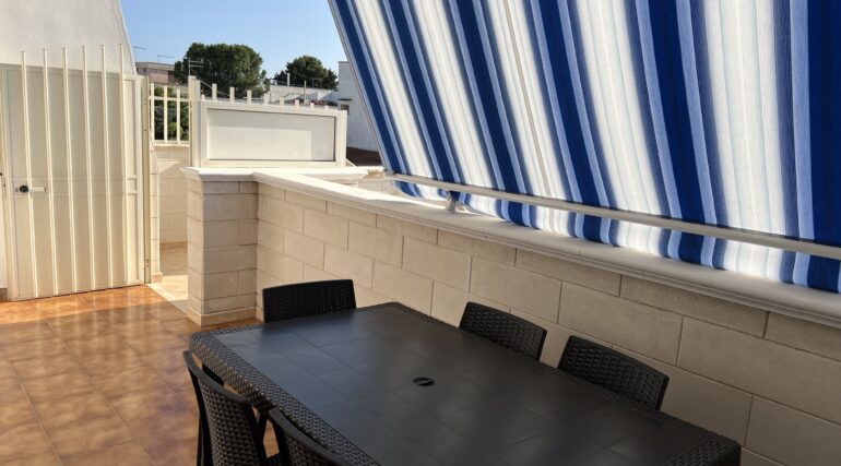 Il vero cuore della struttura è l’ampia veranda panoramica, ideale per rilassarsi, leggere, condividere i pasti all’aperto e lasciarsi incantare dai tramonti estivi, con uno sguardo che si apre sul giardino di pertinenza, creando un’atmosfera di pace e privacy.